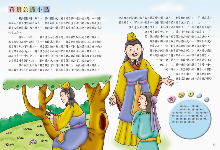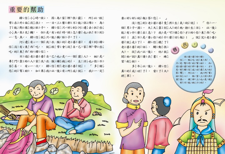 | 結合各類充滿寓意的故事,藉著閱讀有趣的內容,激發孩子的聯想力,並用心去體會故事中的道理。 每篇故事後都附加啟示,幫助理解故事涵義、增加生活知識,教育孩子在做人處事各方面,能朝著正確的方向發展。 |